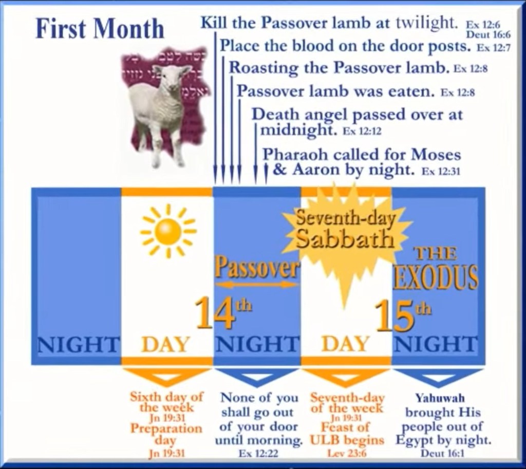 Leviticus 23:5 In the fourteenth day of the first month at even is the LORD’s passover. (see also Exodus 12:21-23)