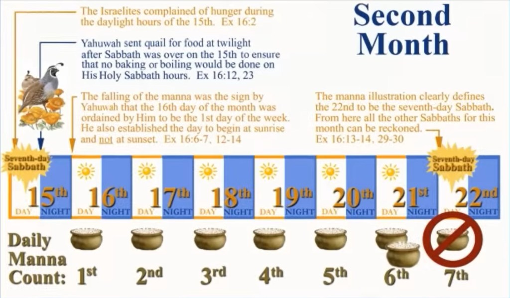 - The schedule of the manna provided illustrated full, complete weeks, thus defining the LORD’s calendar and its Sabbaths.