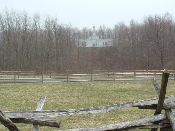 As I walked back to the car on the trail by the farm and the log house, I noted the Palmyra temple across the highway up on a hill. I wonder if Joseph ever saw it in one of his many visions. Talk about the course of the Lord being an eternal round! His work of the restoration continues where it all began! We drove across the highway up to the temple and I stood there looking past the clearing, down at the farm and the grove on the far side. I wonder how many angels attend these hallowed grounds, watching over all those who visit. This will definitely have been the highlight of my vacation.