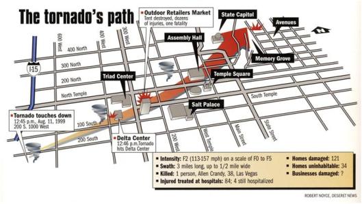 Has this already begun? Perhaps it has and we have been given a sign. In 1999, the heart of Salt Lake City, Utah was unprecedentedly hit with a tornado, which swept through a very concentrated area, destroying buildings and causing extensive damage, of which Temple Square and the Assembly Hall was not immune.